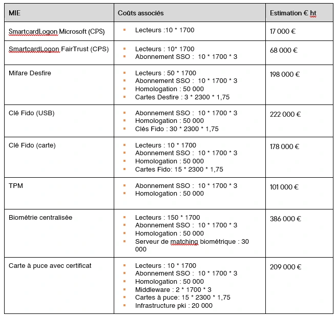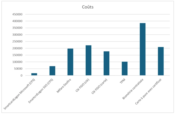 SmartcardLogon Microsoft (CPS) : le coût le plus bas, car elle capitalise sur l’infrastructure existante :