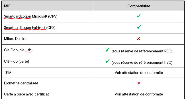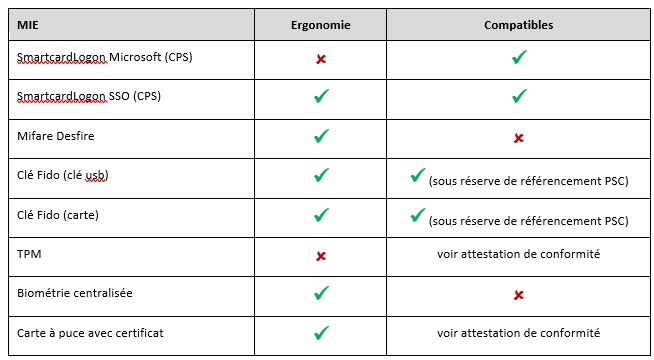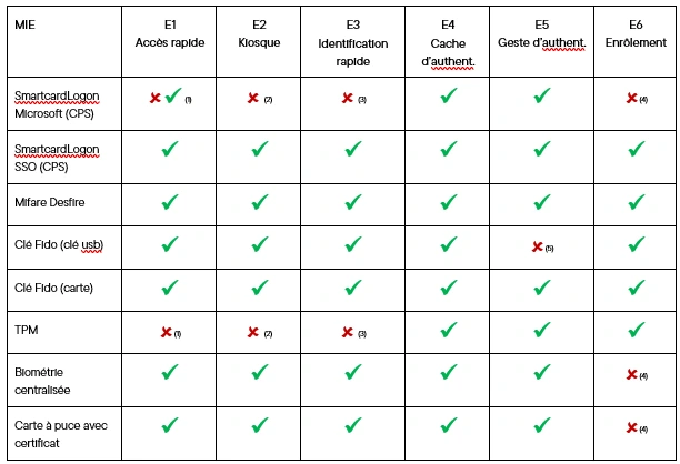 - Enfin, les solutions reposant sur le TPM ou sur une carte à puce avec certificat PKI locale, bien que potentiellement compatibles d’un point de vue sécuritaire, sont conditionnées à l’obtention d’une attestation de conformité et souffrent d’un handicap ergonomique pour le TPM (absence de mode kiosque et d’identification rapide).