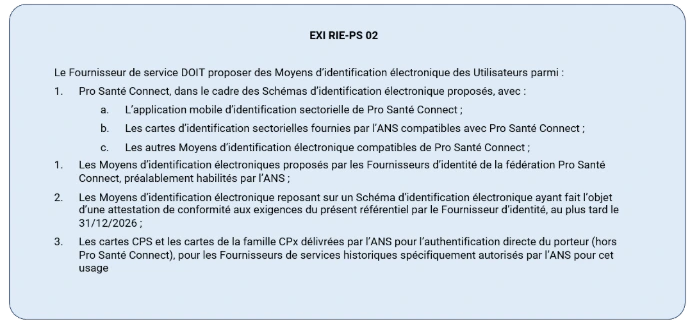 Pour une exploitation dans le cadre du Référentiel d’Identification Électronique (RIE) et de l’écosystème de la santé, une attestation de conformité sera toutefois nécessaire, afin de valider que l’implémentation retenue répond bien aux spécifications techniques requises.
