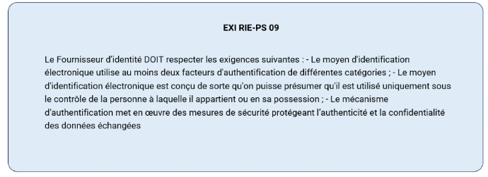 La sécurité et la conformité : il doit répondre aux exigences du RIE, notamment le niveau eIDAS substantiel. Parmi les exigences réglementaires, seuls quatre types de MIE sont autorisés :